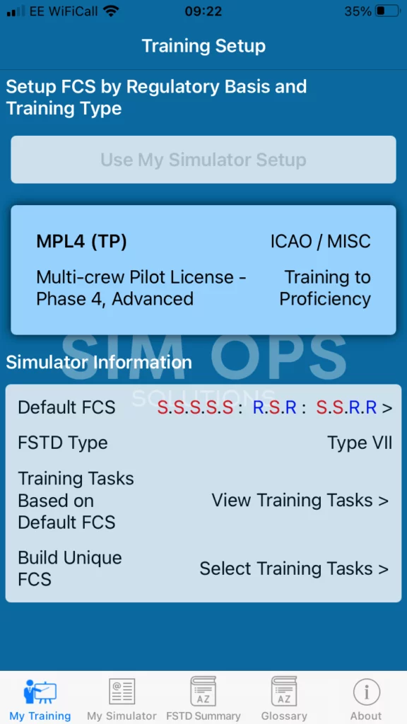 Apart from making the first ICAO 9625 App available to industry, if you want to know more about ICAO 9625 and the FCS concept, how regulators are starting to adopt its philosophy and how it might affect or be applied to your FSTD operations, then contact SIM OPS and we will be happy to quote for appropriate level of consultancy. We can also provide training on either the App or the regulations themselves either at your site (travel permitting) or remotely.